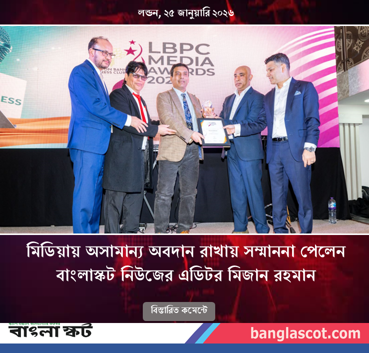 সাংবাদিকতায় অসামান্য অবদান রাখায় লন্ডন বাংলা প্রেসক্লাব (এলবিপিসি) মিডিয়া এওয়ার্ড ২০২৬, পেলেন বাংলাস্কট নিউজের সম্পাদক মিজান রহমান। গত ২৫শে জানুয়ারি রোববার ২০২৬ইং লন্ডনের ইমপ্রেশন ইভেন্ট ভেনুতে লন্ডন বাংলা প্রেস ক্লাবের দ্বি-বাষিক সভা ও নির্বাচন উপলক্ষে প্রথম বারের মত আয়োজিত হয় এলবিপিসি মিডিয়া এওয়ার্ড ২০২৬।