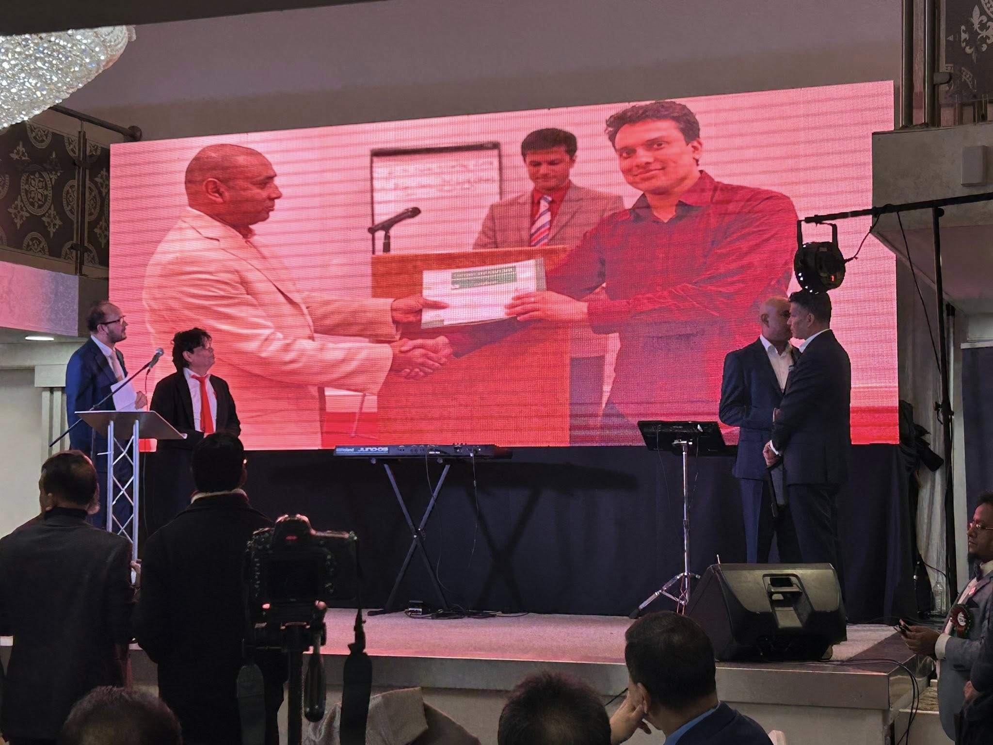 এওয়ার্ড অনুষ্ঠানে সম্মাননাটি তুলে দেন চ্যানেল এস টেলিভিশনের ফাউন্ডার মাহি ফেরদৌস, নর্থ ইংল্যন্ড বাংলাদেশী টিভি জার্নালিস্ট এসোসিয়েশনের প্রেসিডেন্ট আহমদ হোসেন হেলাল, লন্ডন বাংলা প্রেস ক্লাবের প্রেসিডেন্ট মোহাম্মদ জুবায়ের এবং সাধারন সম্পাদক তাইছির মাহমুদ।